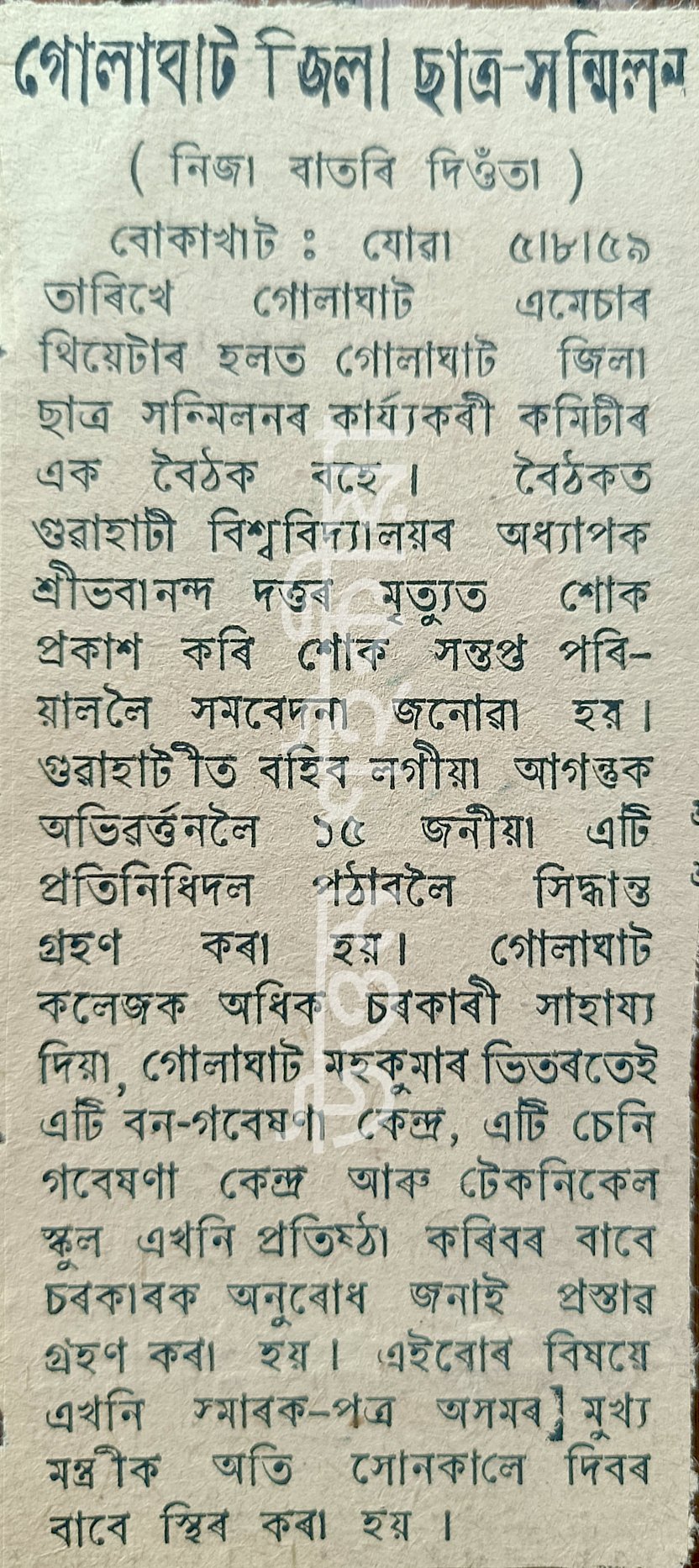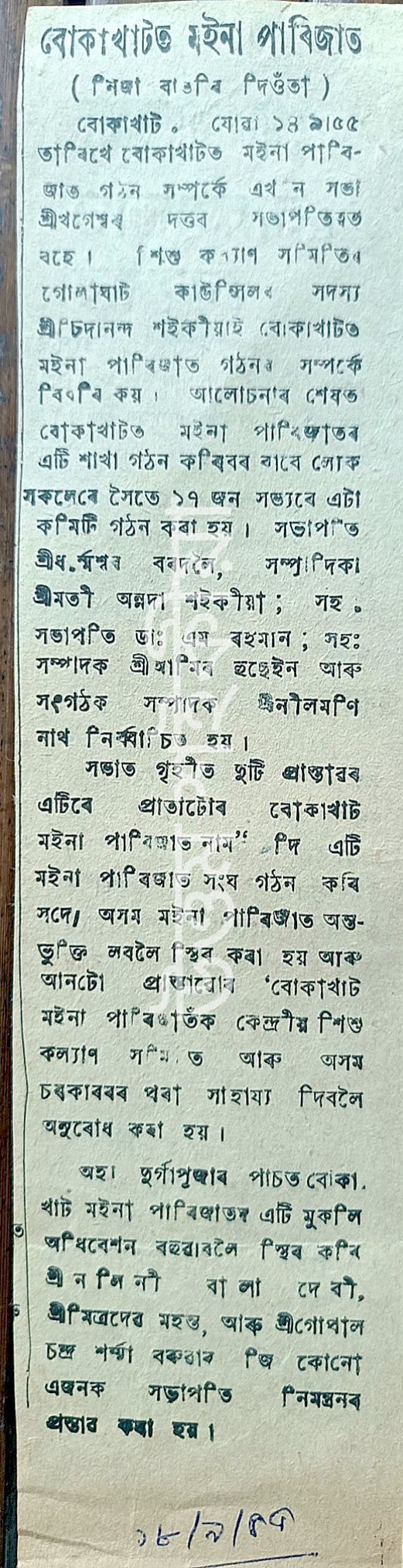 • বোকাখাতৰ নৱ নিৰ্মিত লোকনিৰ্মান বিভাগৰ অতিথিশালাৰ নাম আপকুৰ প্ৰতিষ্ঠাপক সভপতি প্ৰয়াত  সাংবাদিক ভৱেশ শইকীয়াৰ নামত কৰিবলৈ বোকাখাত প্ৰেছ ক্লাবৰ আহ্বান :  কাৰ্য নিৰ্বাহকত সিধান্ত  :